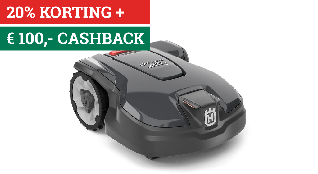 – Koop voor 31-05-2026 een Automower® 305, upload hier uw factuur en gegevens voor 30-06-2026 en ontvang €100,- cashback van Husqvarna. Klik voor de voorwaarden van deze actie.